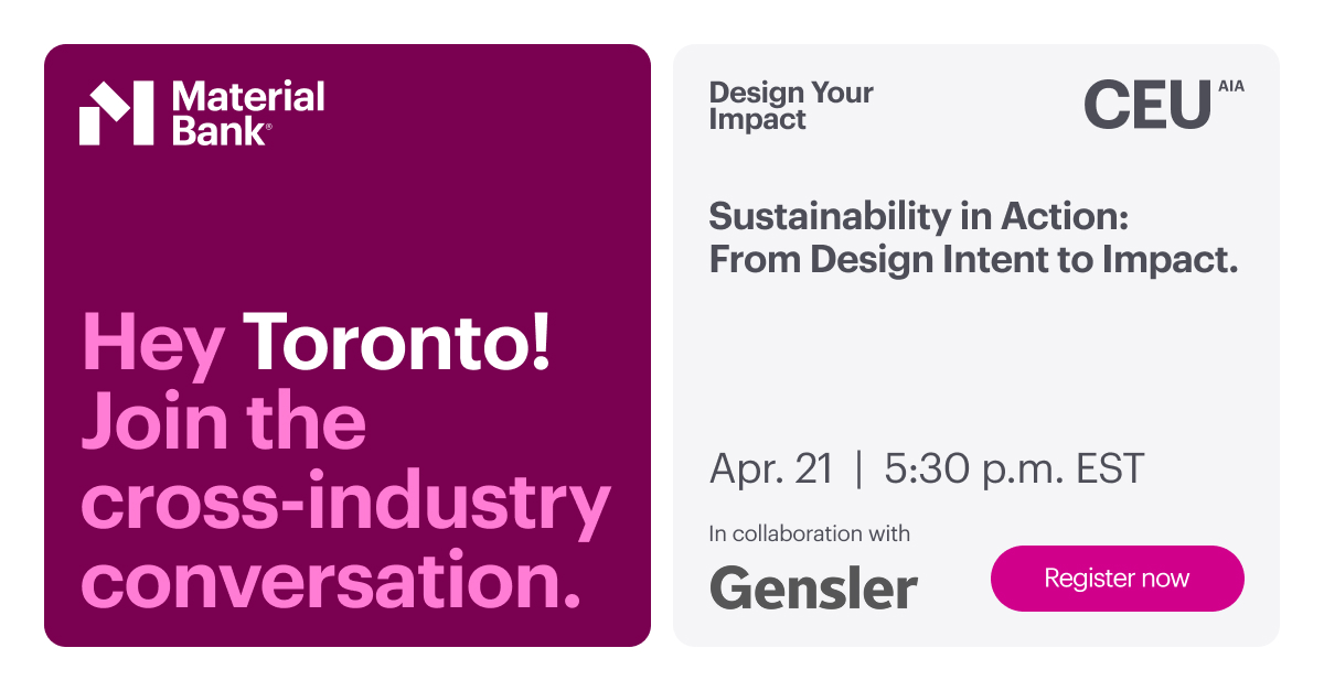 Material Bank is thrilled to host our Design Your Impact CEU Series: Toronto edition with Gensler.